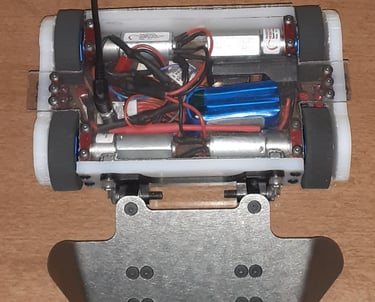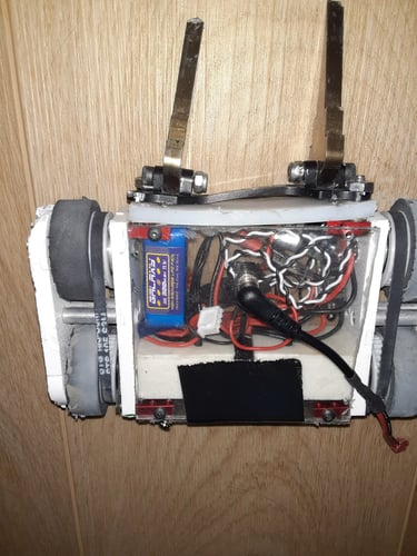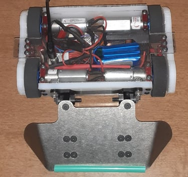 Challenges: Switched from brushed drive to brushless. Added 1.5lbs of magnetic downforce, allowing the bot to drive vertically. Made the design on CAD. Broke the power switch the night before the competition and was forced to make a new chassis to fit an older one.