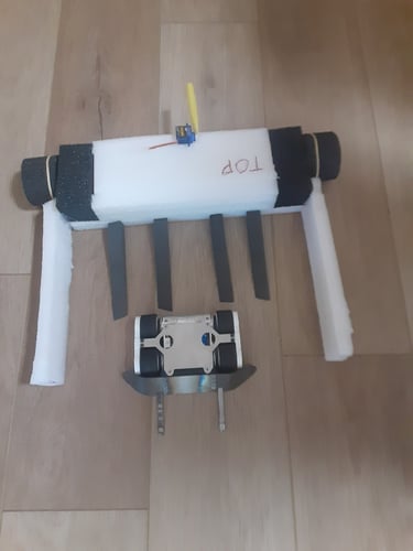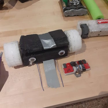 Lessons: Rushed chassis was too flimsy. Magnets caused the foam wheels to compress, making it immobile.