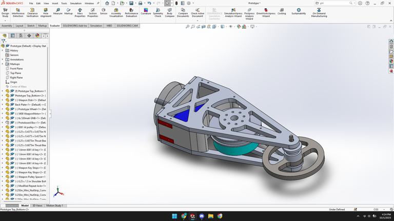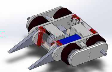 Upgrades: Improved the weapon motor by getting CNC'd parts and weapon system by using thicker rings. Lighter chassis for the upgraded weapon system. Entire robot is smaller than v1 in every dimension.