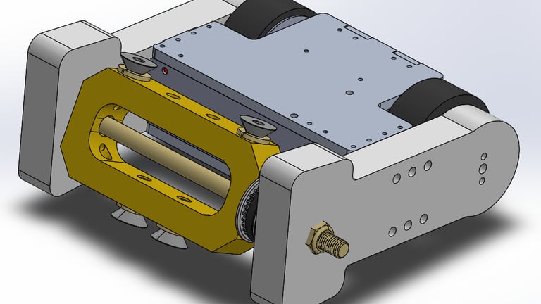 Challenges: Switched to a lighter brushless drive for more weight. Changed foam wheels to stiff rubber. Swapped chassis material from lexan to 6061 Al. Increased magnetic downforce from 1.5lbs to 4, allowing the bot to drive vertically and inverted.
